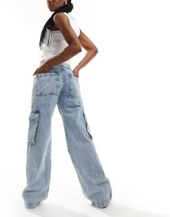 AllSaints Echo Wide Leg Cargo Jeans In Light Indigo For Women