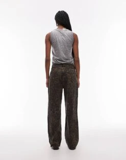 AllSaints Charli Satin Straight Trousers In Leopard Print Co-ord For Women Jinx Golden Brown