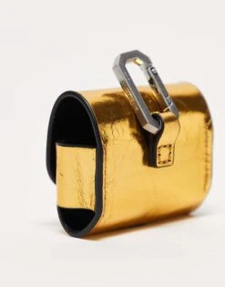 AllSaints Leather Metallic Airpod Case In Gold For Women