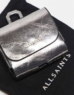 AllSaints Leather Metallic Airpod Case In Silver For Women